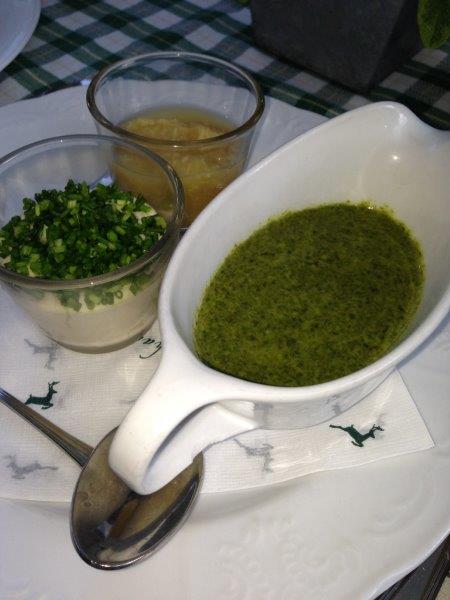 Dinner was served when we were sailing (I am told that "sailing" is a nautical term in this connection meaning "to begin a journey by water", our boat was in fact engine-driven), and it was excellent. Okay, I was so hungry, I would have eaten paper probably, but it was excellent nevertheless. Here a sneak-peak of the starters, but we also had loads of main courses and sweets.
